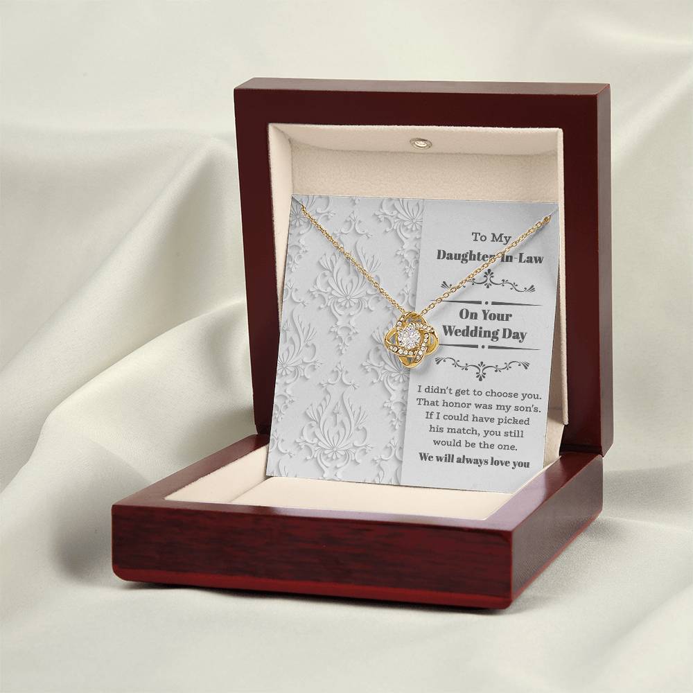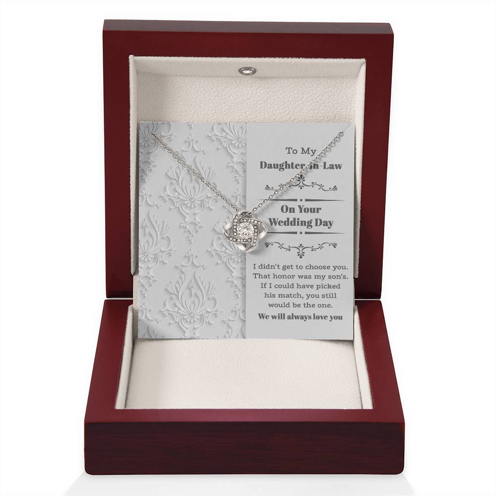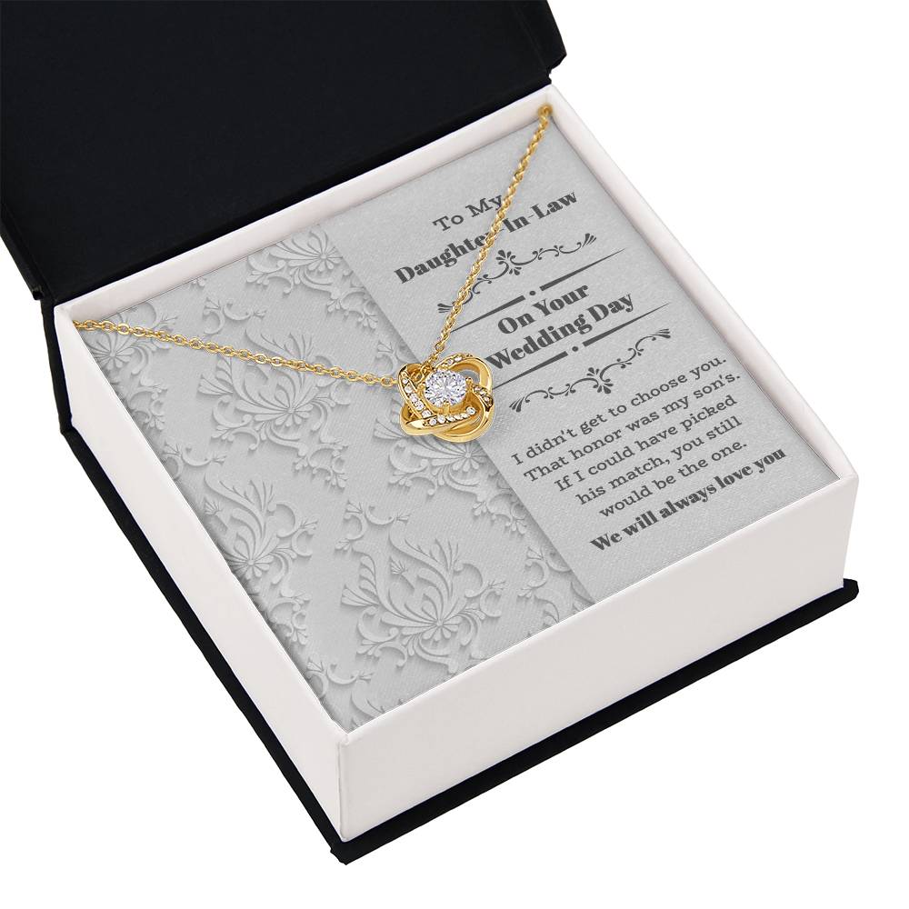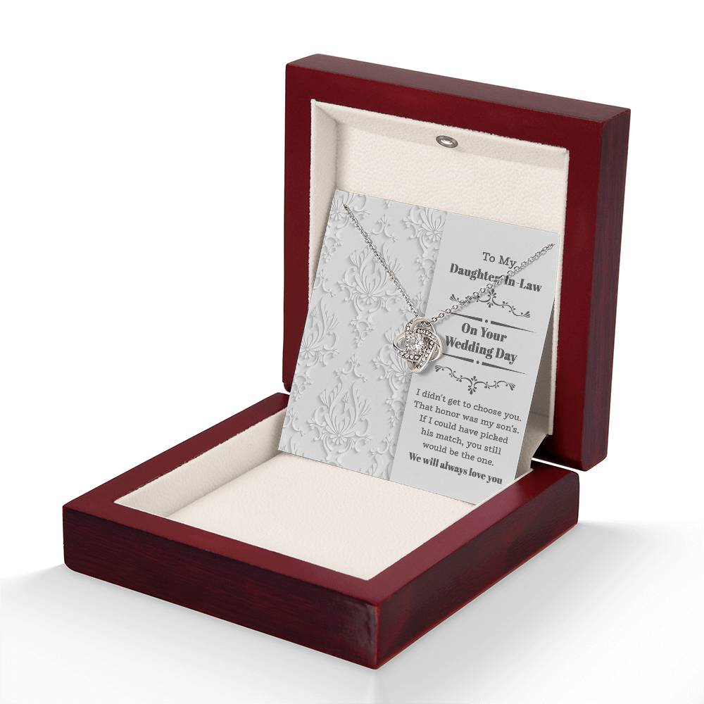 Imagine her reaction receiving this beautiful Love Knot Necklace. Representing an unbreakable bond between two souls, this piece features a beautiful pendant embellished with premium cubic zirconia crystals. Surprise your loved one with this gorgeous gift today!