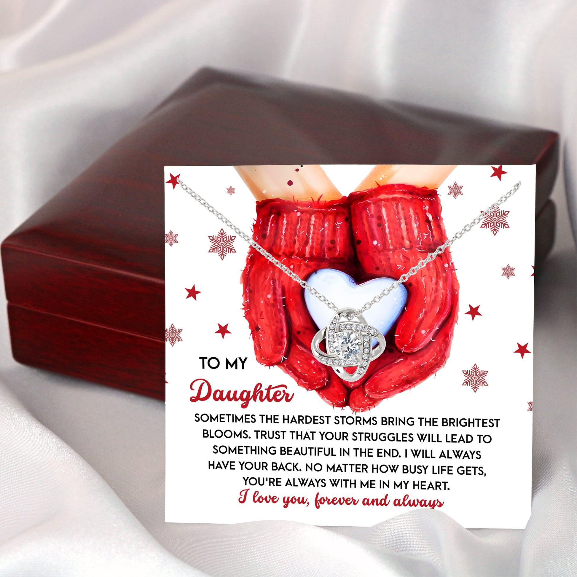 Imagine her reaction receiving this beautiful Love Knot Necklace. Representing an unbreakable bond between two souls, this piece features a beautiful pendant embellished with premium cubic zirconia crystals. Surprise your loved one with this gorgeous gift today!
