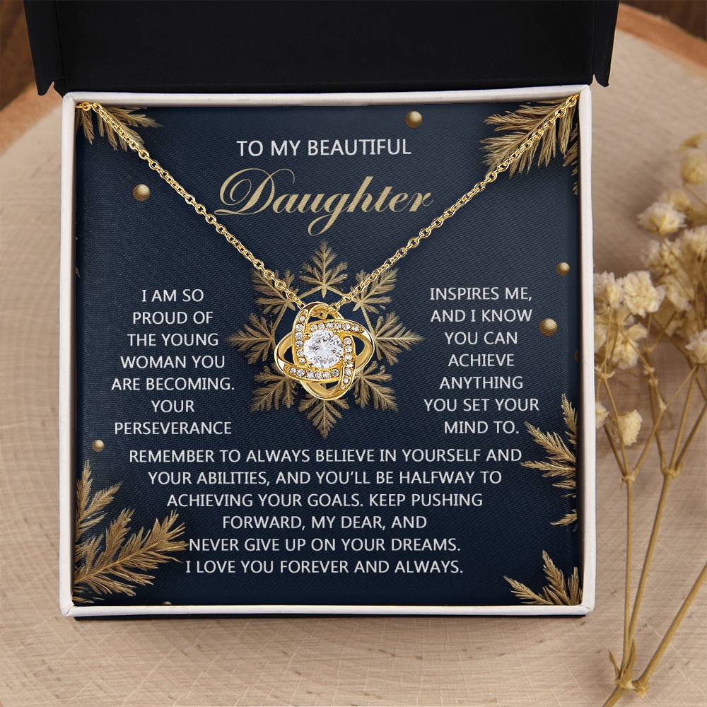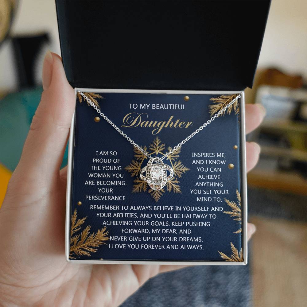 Imagine her reaction receiving this beautiful Love Knot Necklace. Representing an unbreakable bond between two souls, this piece features a beautiful pendant embellished with premium cubic zirconia crystals. Surprise your loved one with this gorgeous gift today!