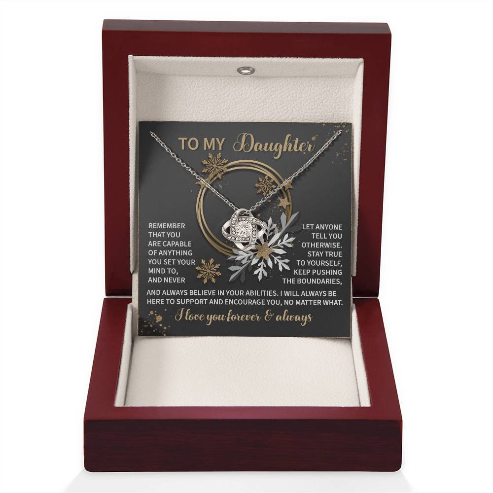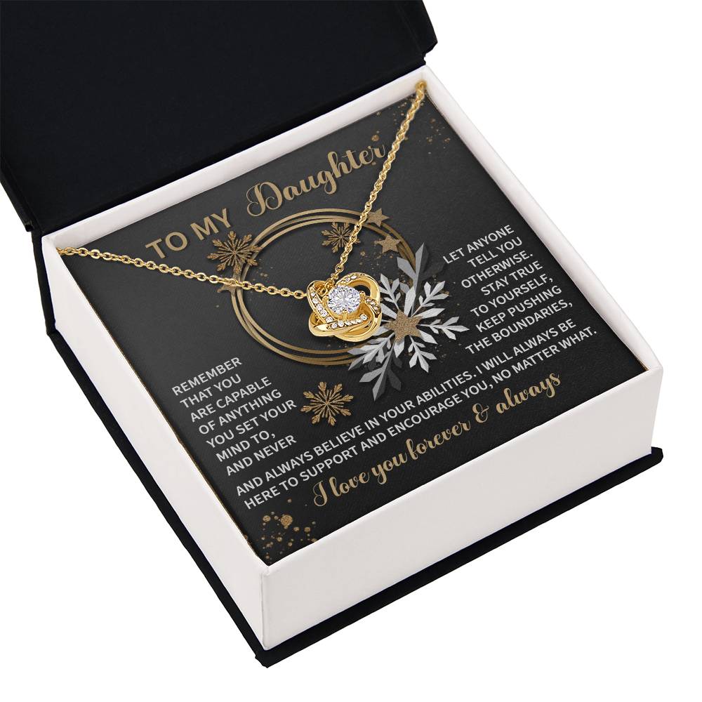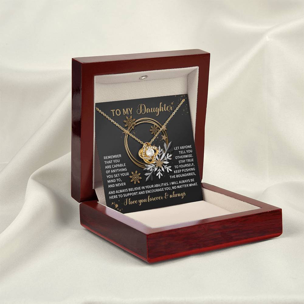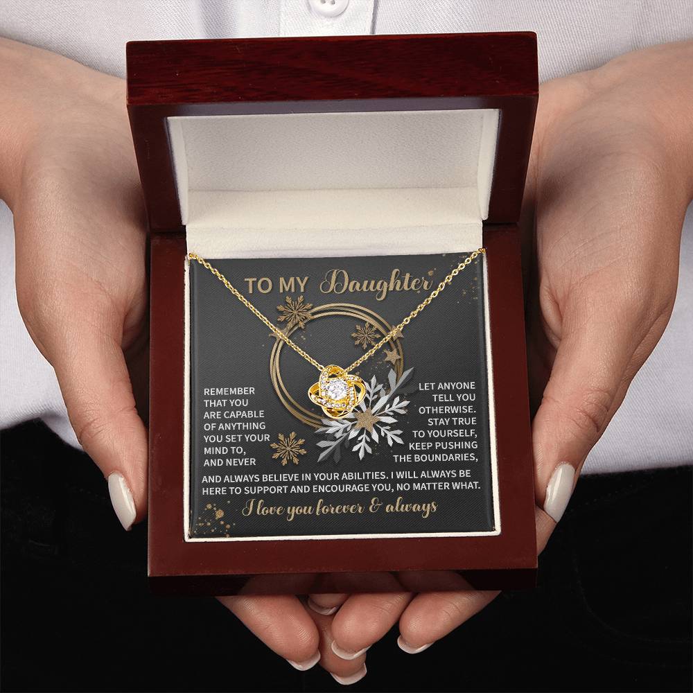 Imagine her reaction receiving this beautiful Love Knot Necklace. Representing an unbreakable bond between two souls, this piece features a beautiful pendant embellished with premium cubic zirconia crystals. Surprise your loved one with this gorgeous gift today!