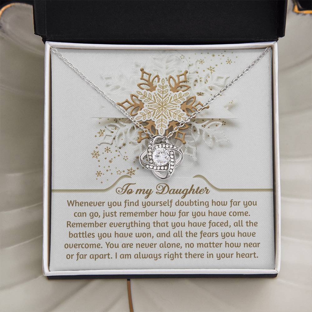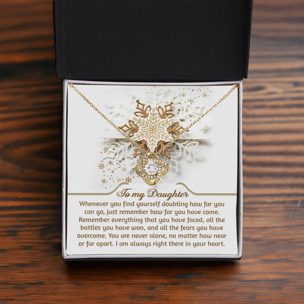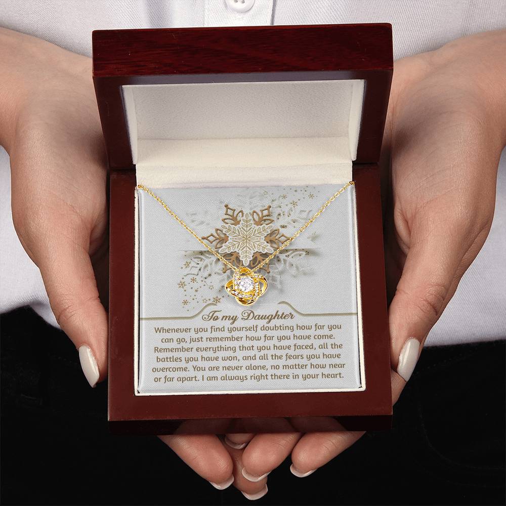 Imagine her reaction receiving this beautiful Love Knot Necklace. Representing an unbreakable bond between two souls, this piece features a beautiful pendant embellished with premium cubic zirconia crystals. Surprise your loved one with this gorgeous gift today!