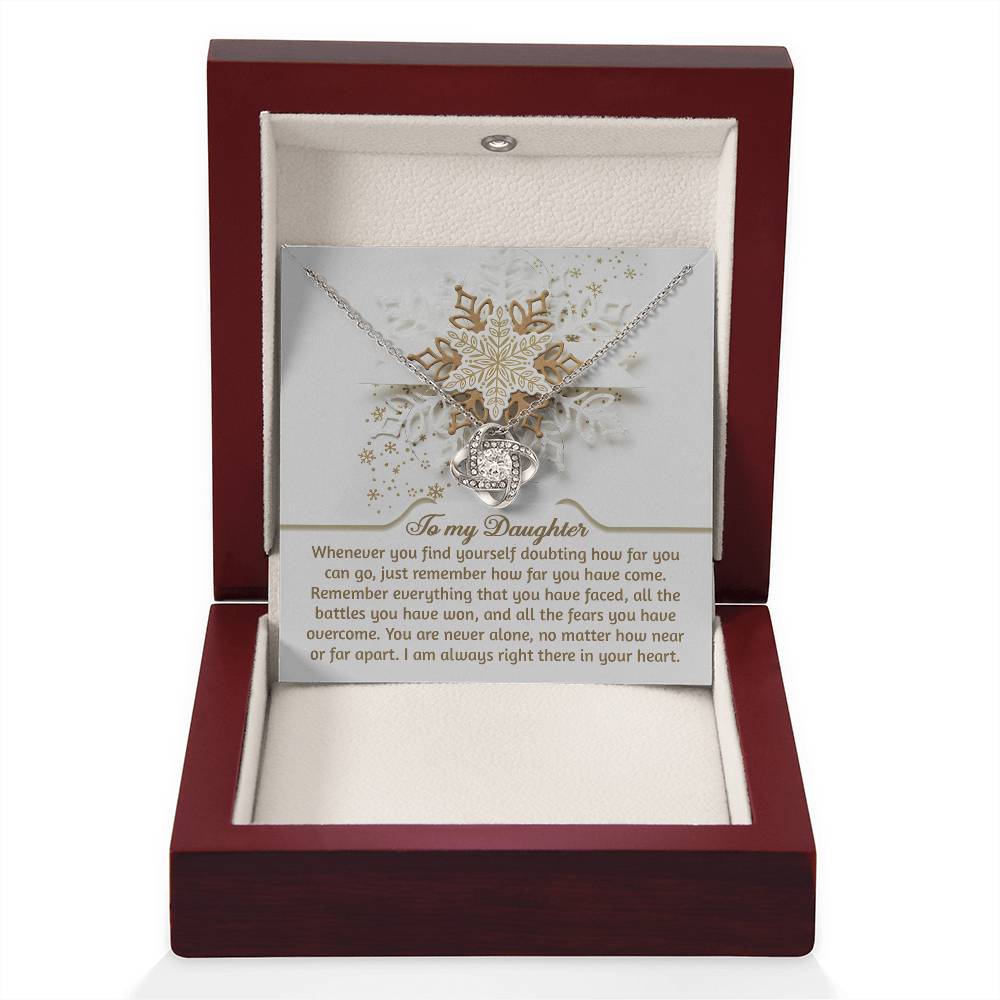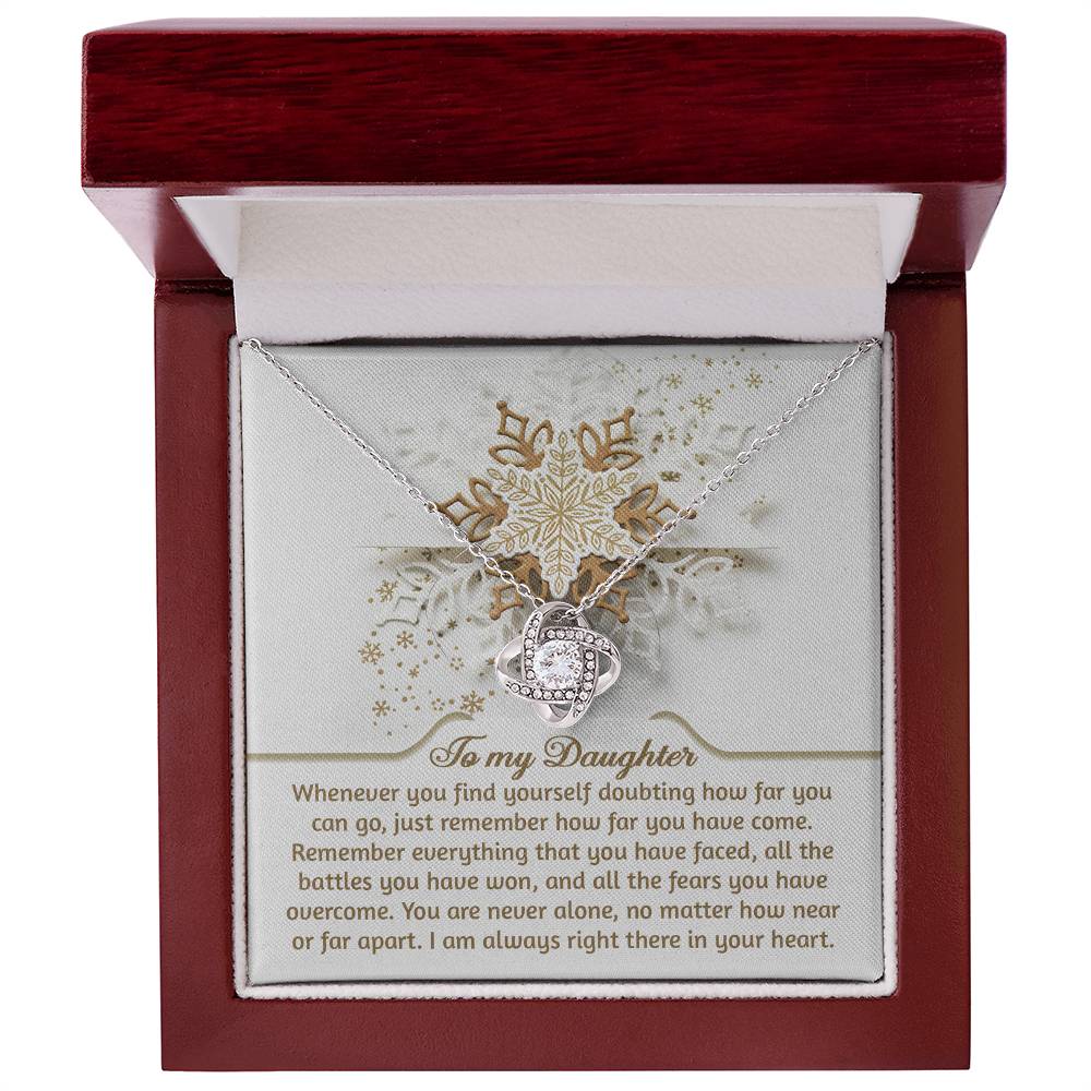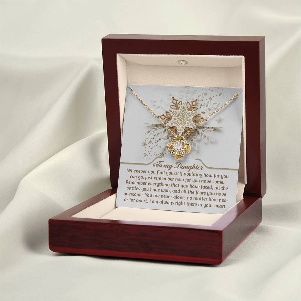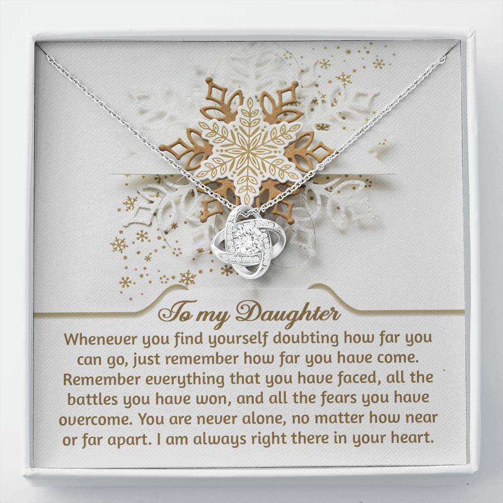 Imagine her reaction receiving this beautiful Love Knot Necklace. Representing an unbreakable bond between two souls, this piece features a beautiful pendant embellished with premium cubic zirconia crystals. Surprise your loved one with this gorgeous gift today!