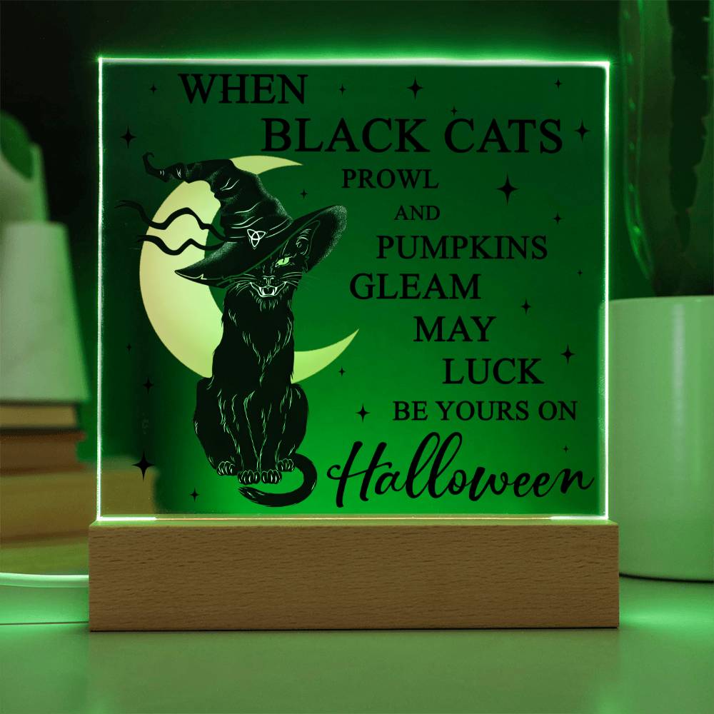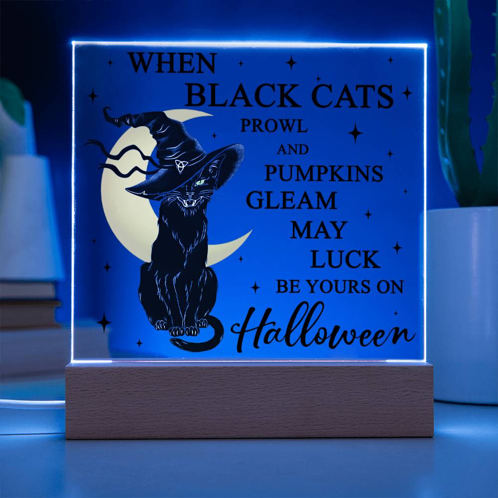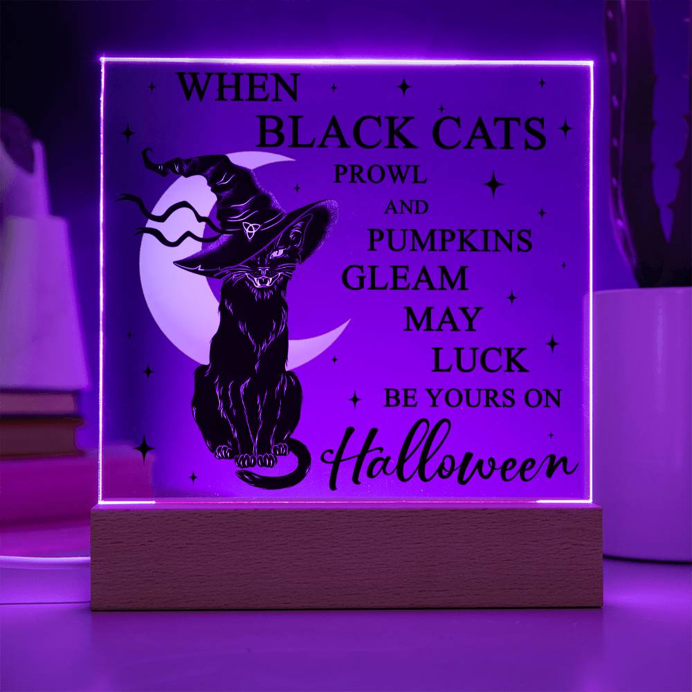 Halloween Decorative Plaques When The Black Cats Prowl, Pumpkins Gleam, May Luck Be Yours, gift ideas witch