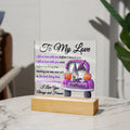 Combine modern technology and a heartfelt message with our Square Acrylic Plaque! This design is printed on crystal-clear premium acrylic and easily becomes the centerpiece of any room. And the contemporary design wouldn't be complete without its sleek wooden base, elevating the display that will instantly become a conversation starter. Create a memorable presentation when you upgrade to the LED wooden base! This is the ideal present for your beloved partner, family members, or dear friends on special occasions like anniversaries, birthdays, or any occasion where you want to express your love and appreciation in an unforgettable way. Let your loved ones know how much they mean to you by purchasing today!