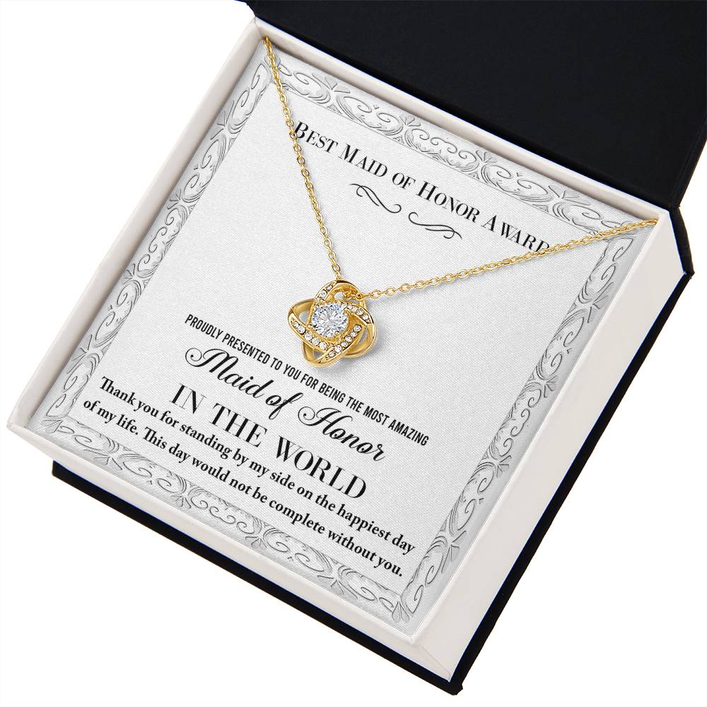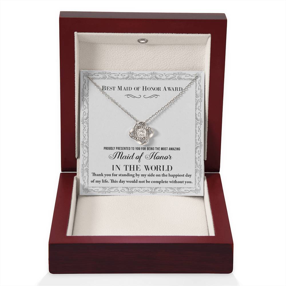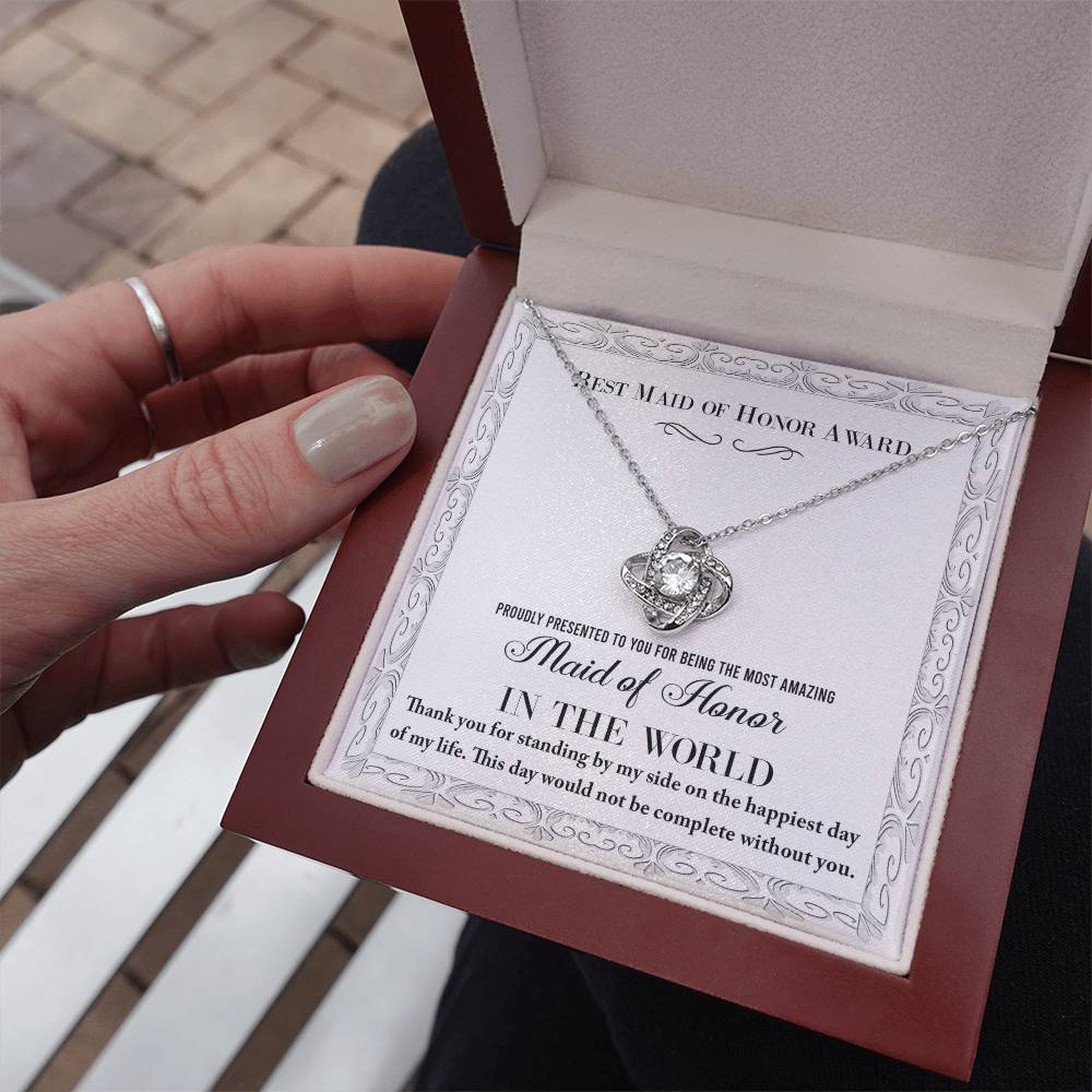 Imagine her reaction receiving this beautiful Love Knot Necklace. Representing an unbreakable bond between two souls, this piece features a beautiful pendant embellished with premium cubic zirconia crystals. Surprise your loved one with this gorgeous gift today!