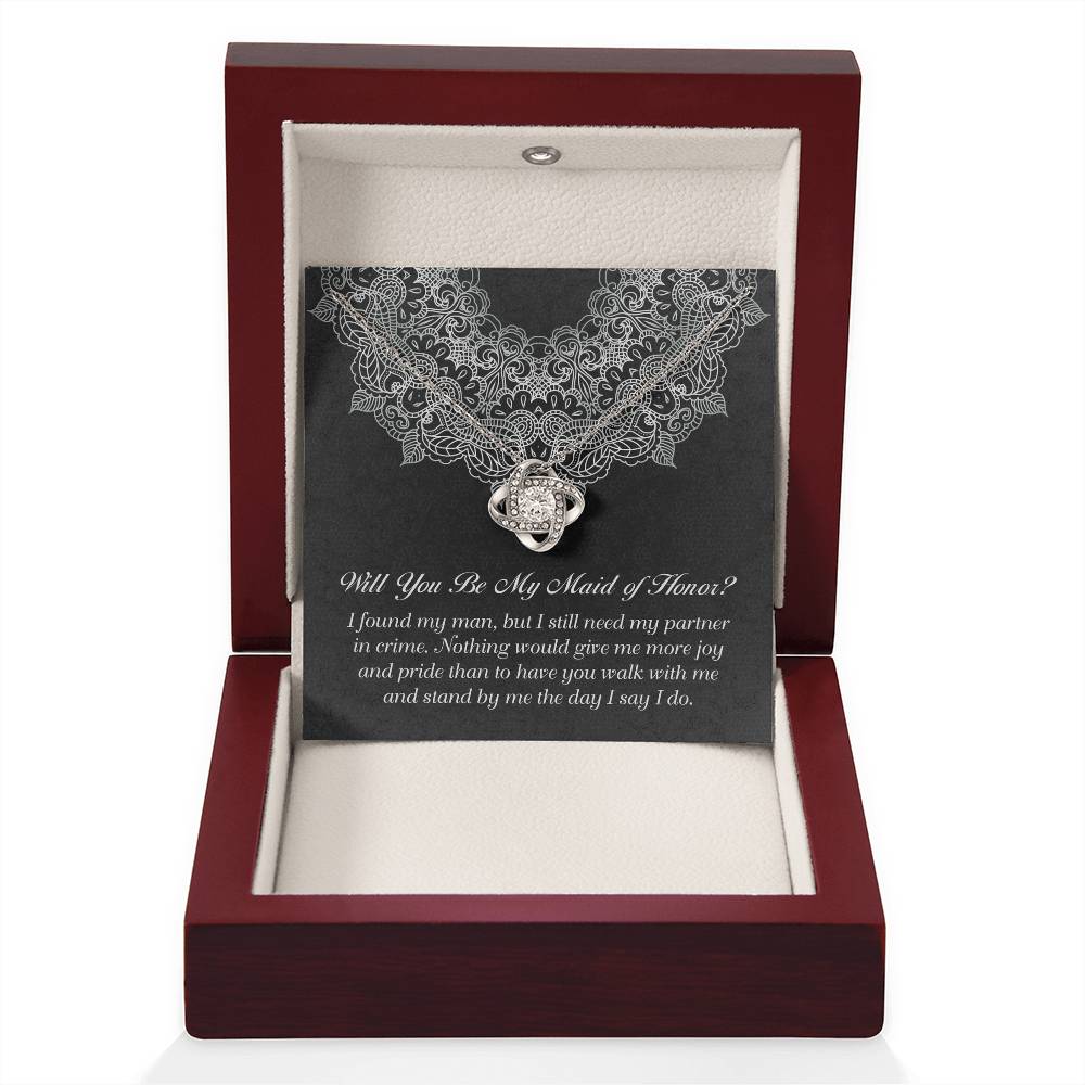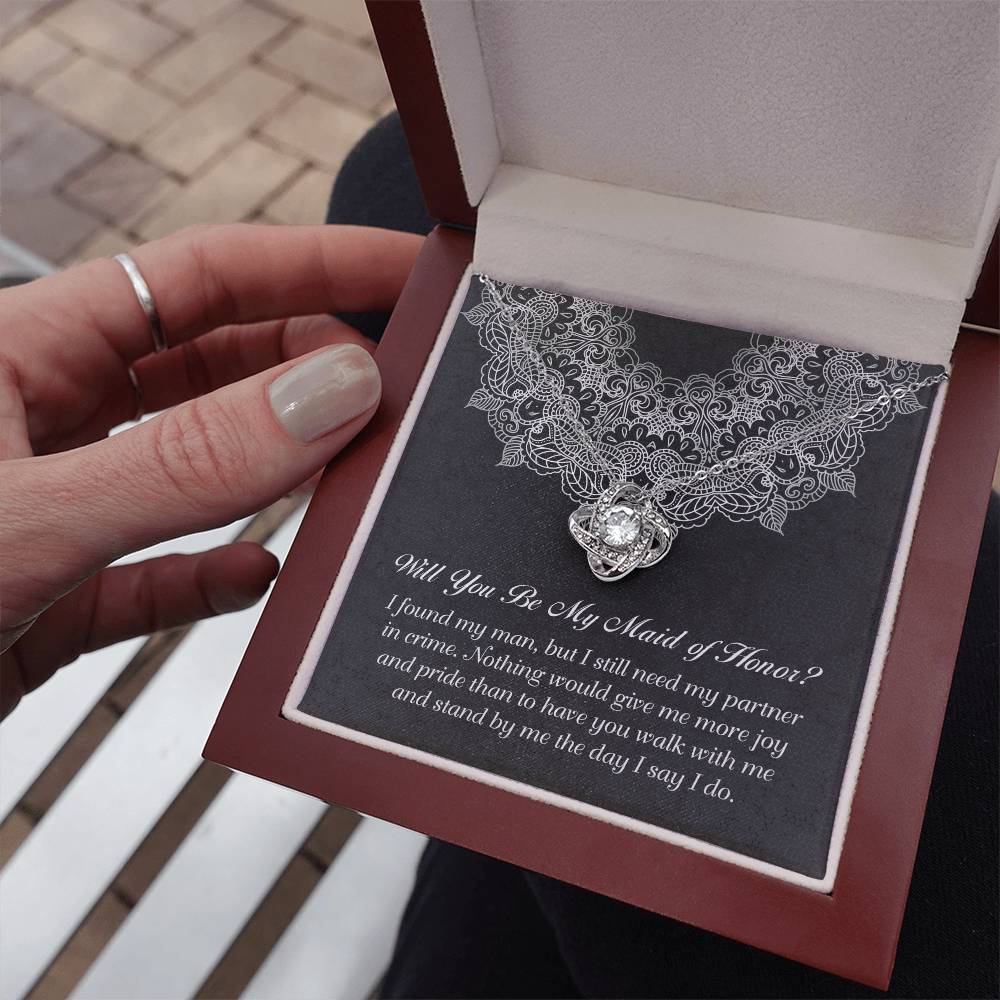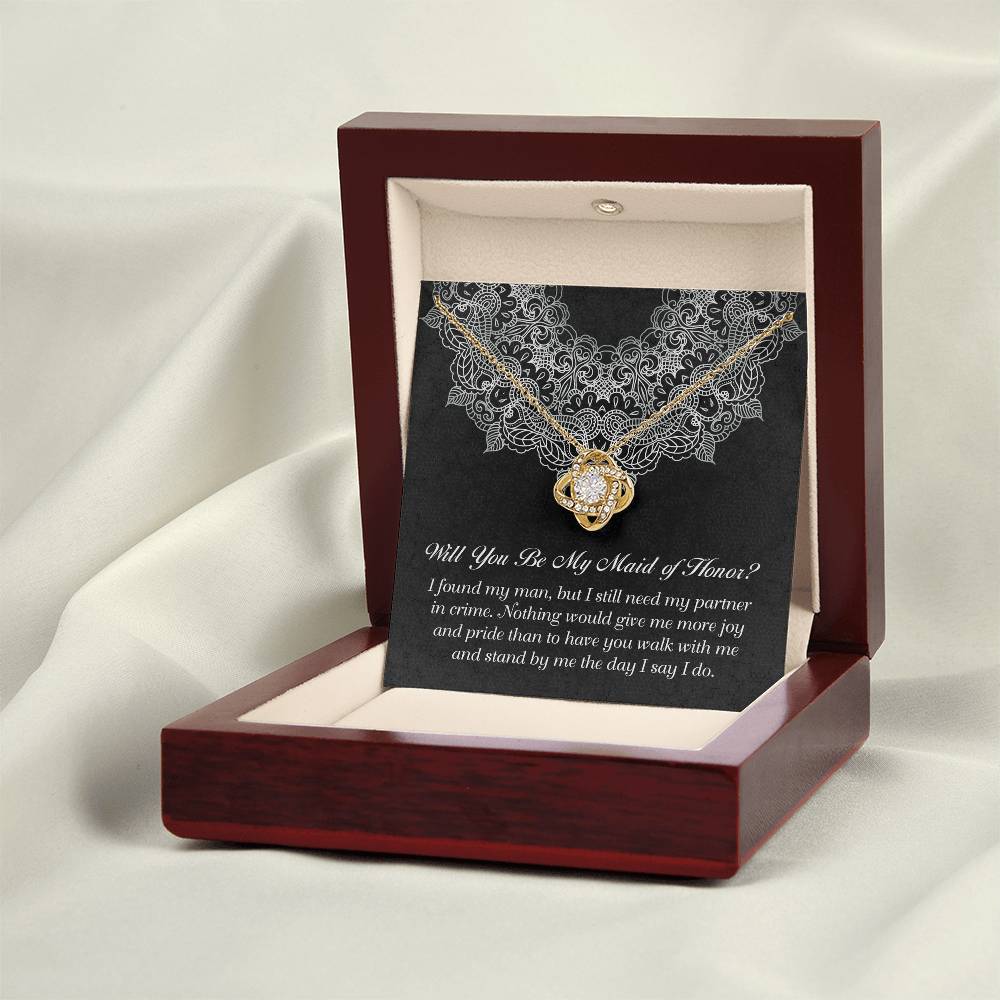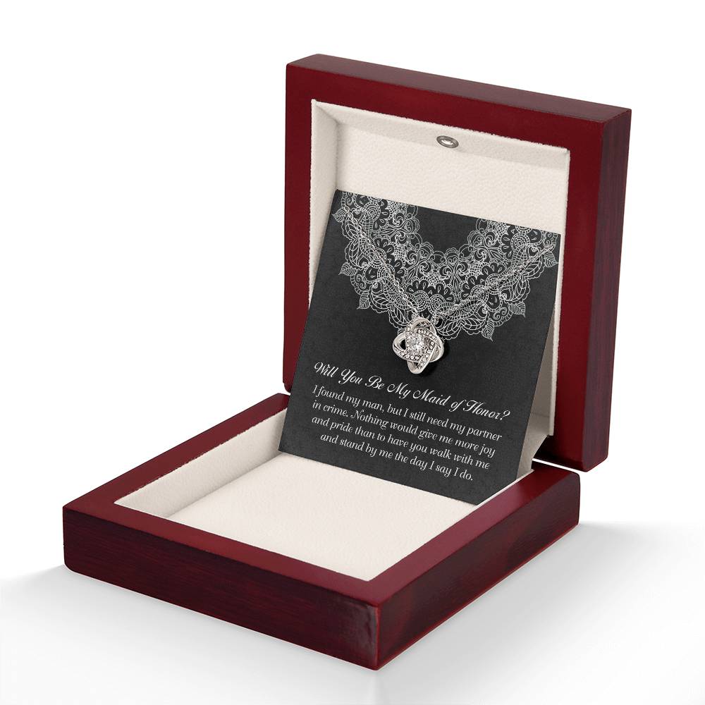 Imagine her reaction receiving this beautiful Love Knot Necklace. Representing an unbreakable bond between two souls, this piece features a beautiful pendant embellished with premium cubic zirconia crystals. Surprise your loved one with this gorgeous gift today!