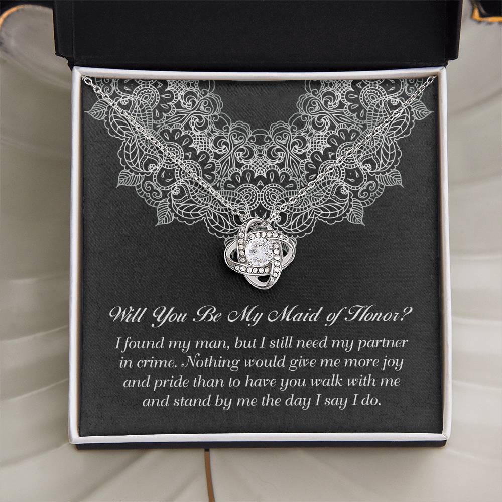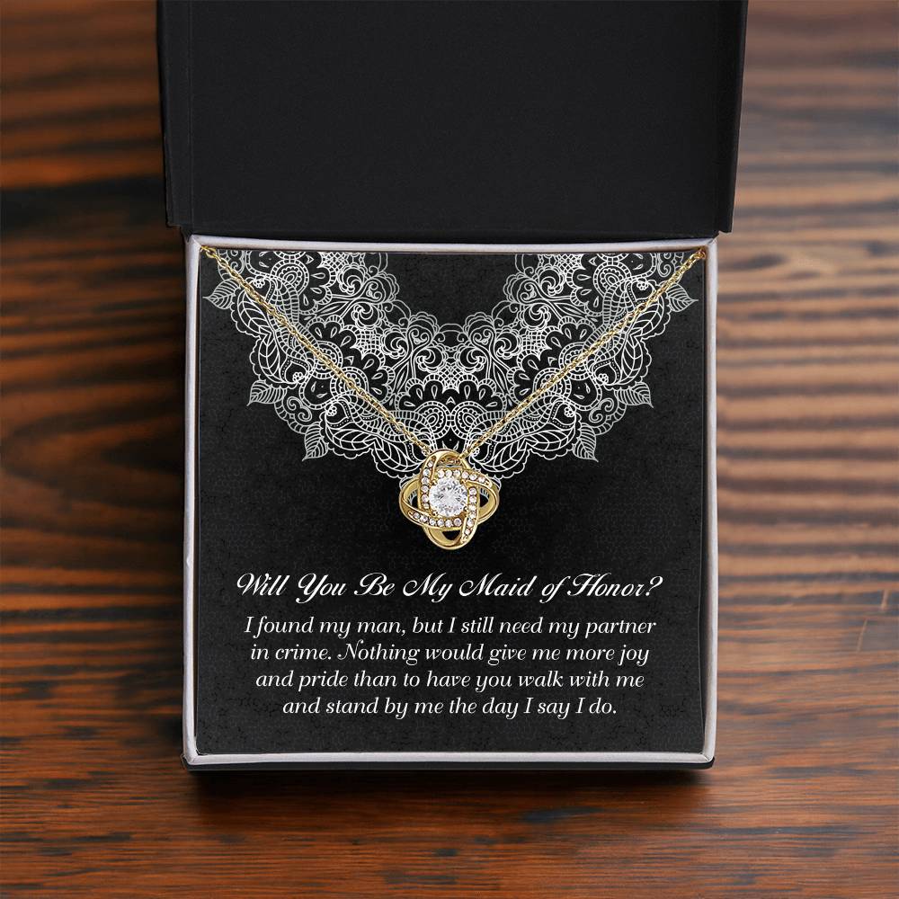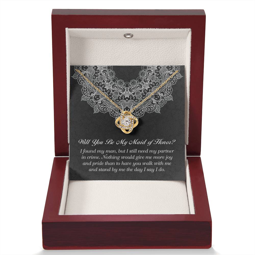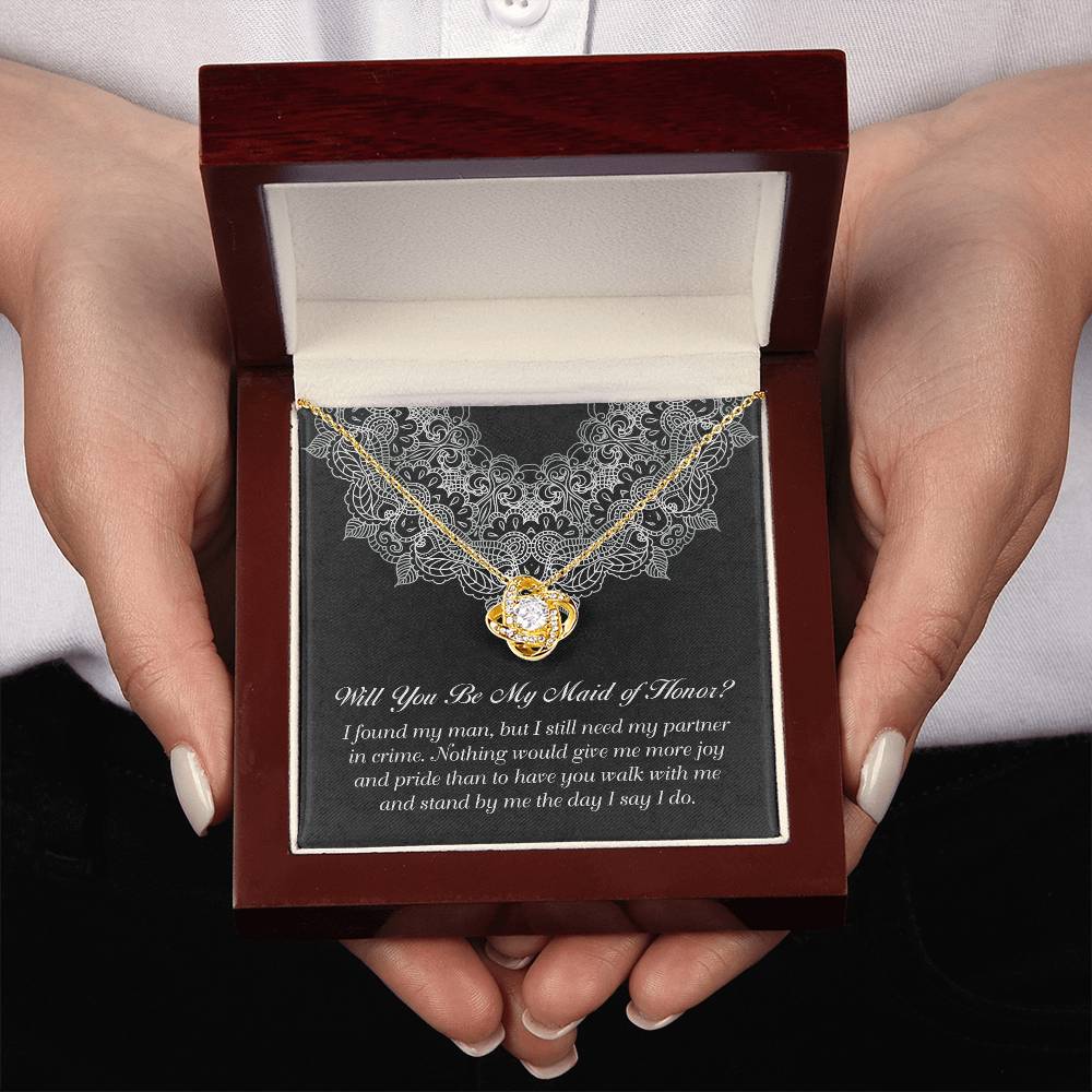 Imagine her reaction receiving this beautiful Love Knot Necklace. Representing an unbreakable bond between two souls, this piece features a beautiful pendant embellished with premium cubic zirconia crystals. Surprise your loved one with this gorgeous gift today!