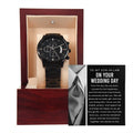To My Son-in-Law-Hold Her Hand-Metal Chronograph Watch Black Chronograph Watch with Mahogany Style Luxury Box with Message card