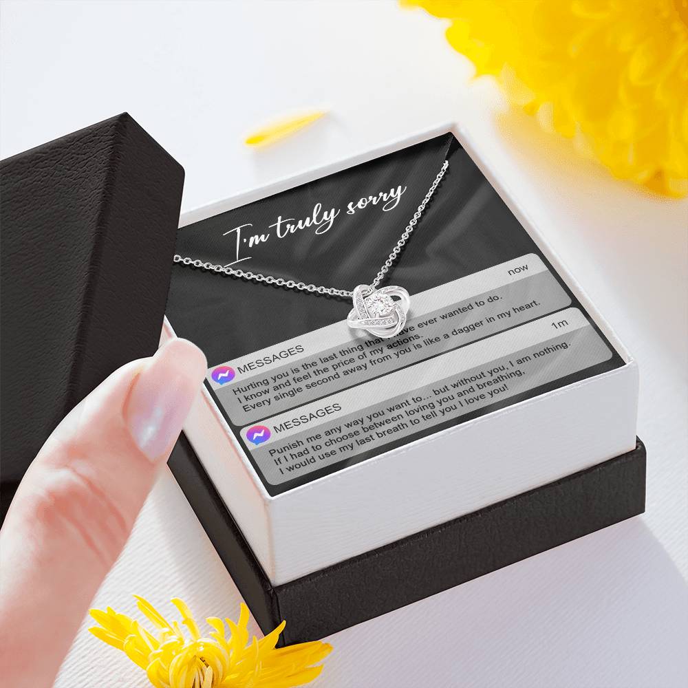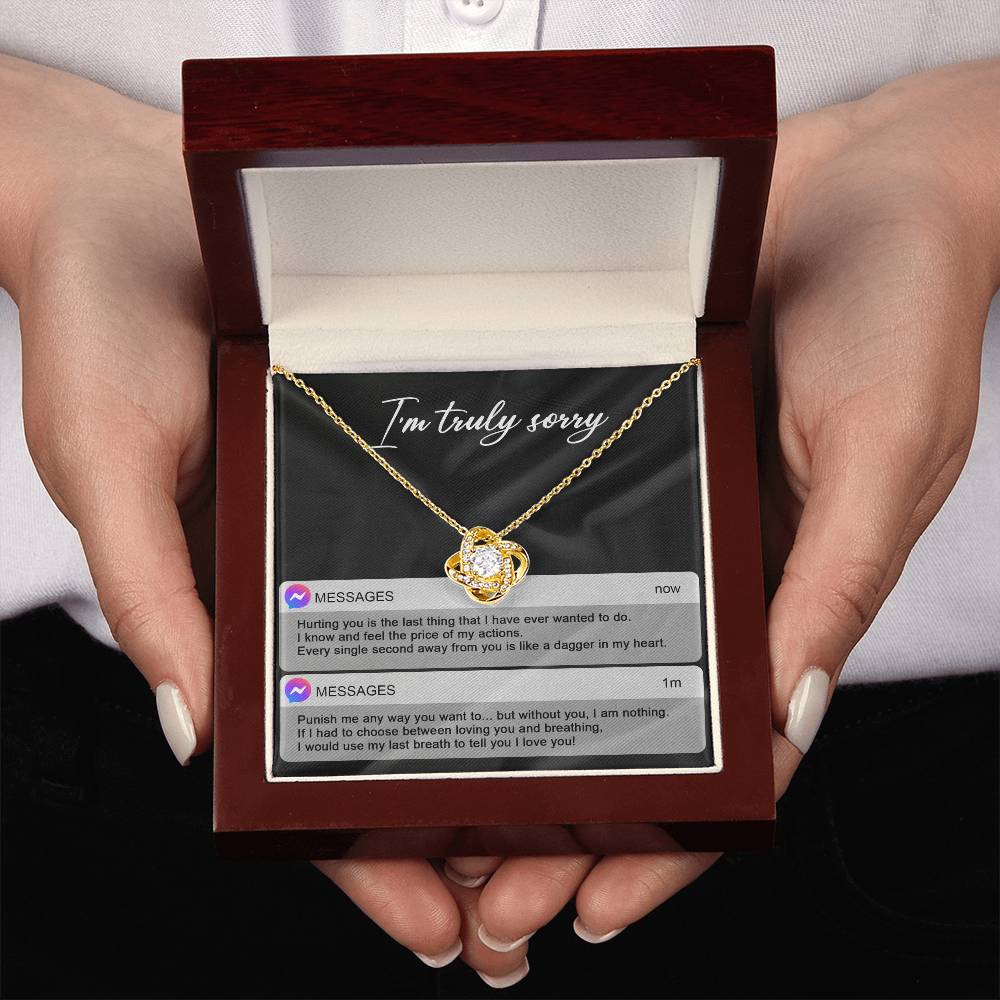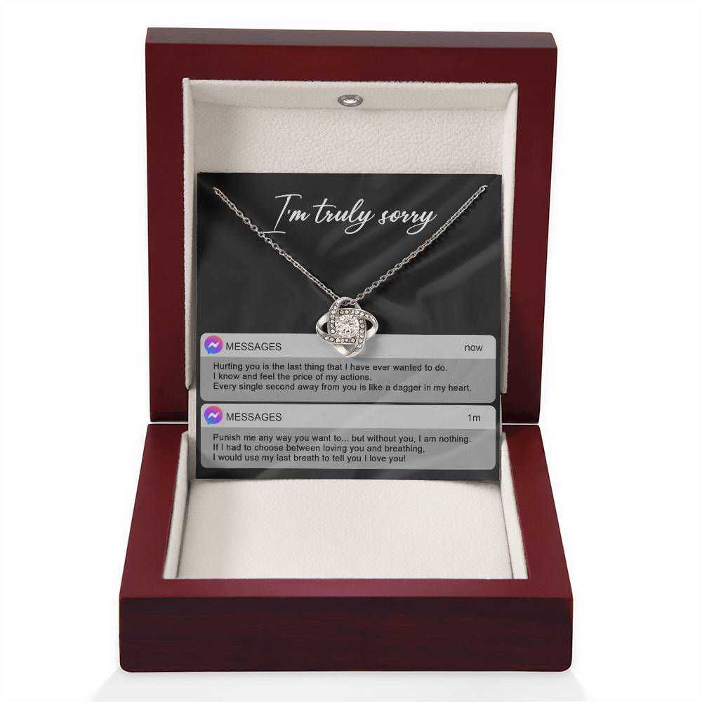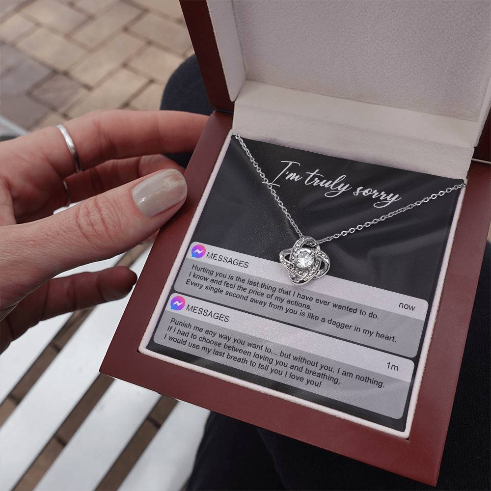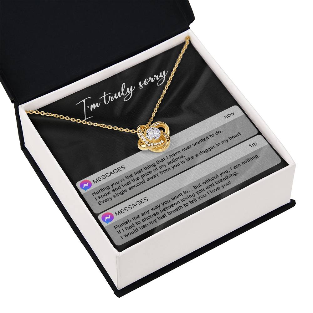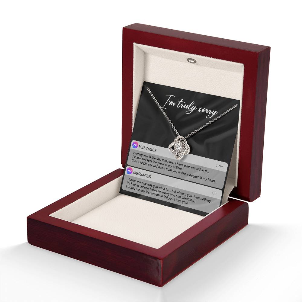 Imagine her reaction receiving this beautiful Love Knot Necklace. Representing an unbreakable bond between two souls, this piece features a beautiful pendant embellished with premium cubic zirconia crystals. Surprise your loved one with this gorgeous gift today!