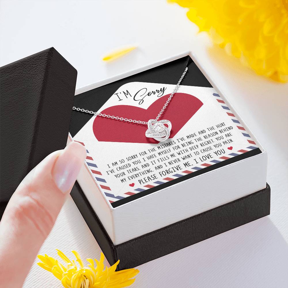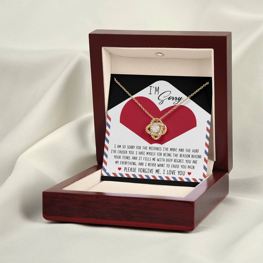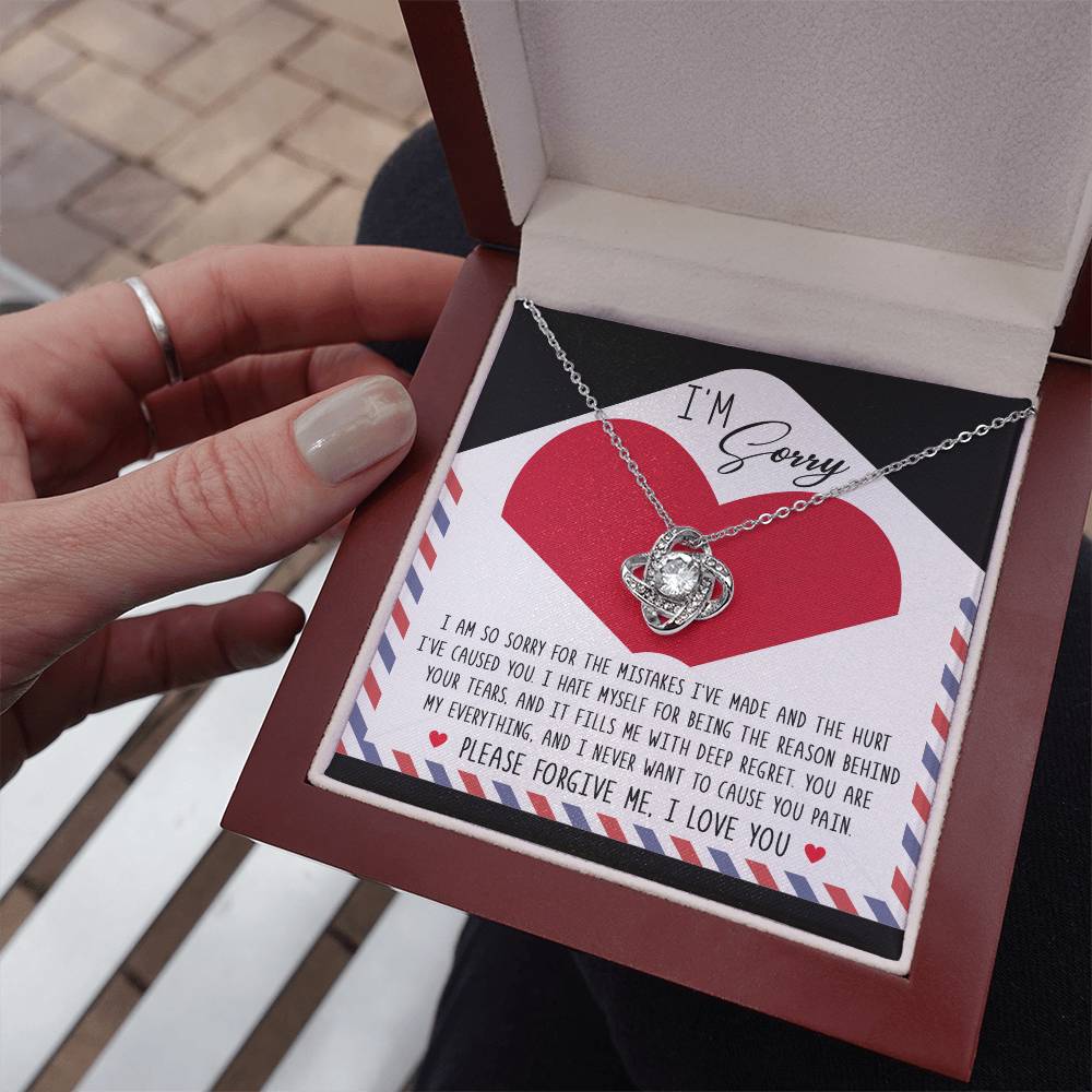 Imagine her reaction receiving this beautiful Love Knot Necklace. Representing an unbreakable bond between two souls, this piece features a beautiful pendant embellished with premium cubic zirconia crystals. Surprise your loved one with this gorgeous gift today!