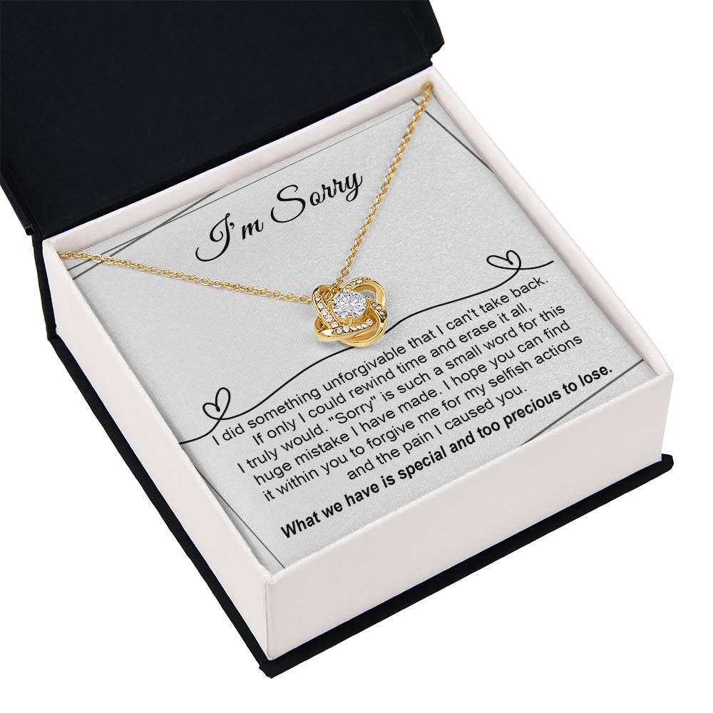 Imagine her reaction receiving this beautiful Love Knot Necklace. Representing an unbreakable bond between two souls, this piece features a beautiful pendant embellished with premium cubic zirconia crystals. Surprise your loved one with this gorgeous gift today!