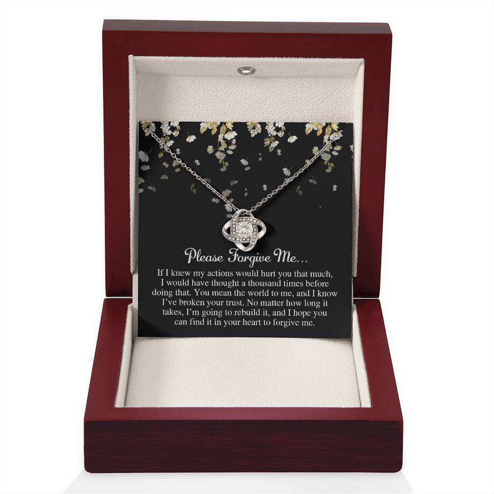 Imagine her reaction receiving this beautiful Love Knot Necklace. Representing an unbreakable bond between two souls, this piece features a beautiful pendant embellished with premium cubic zirconia crystals. Surprise your loved one with this gorgeous gift today!