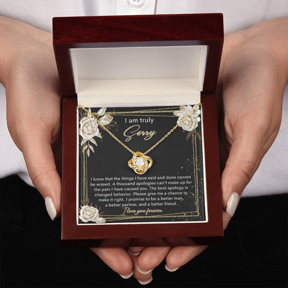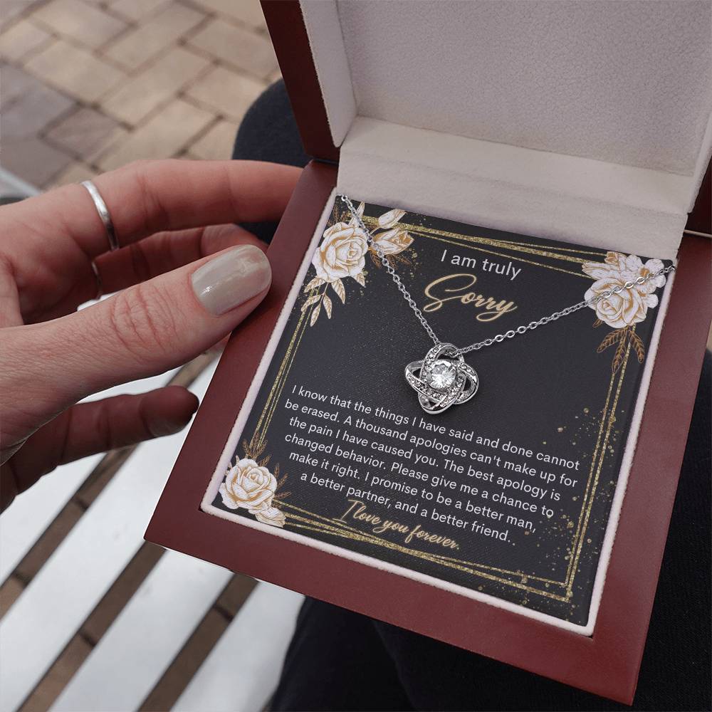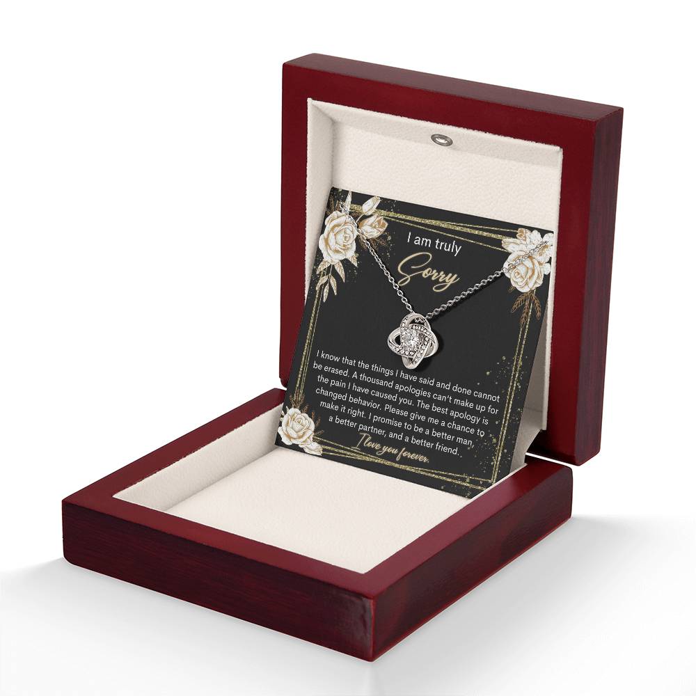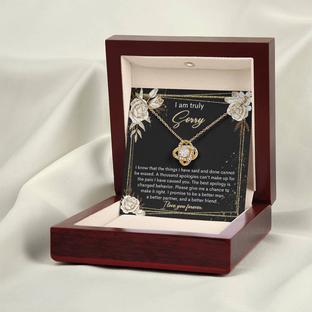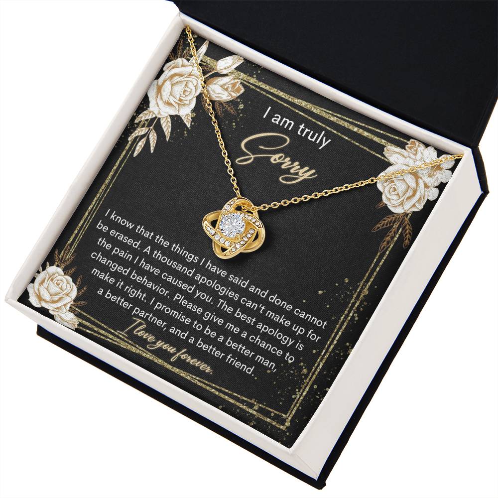 Imagine her reaction receiving this beautiful Love Knot Necklace. Representing an unbreakable bond between two souls, this piece features a beautiful pendant embellished with premium cubic zirconia crystals. Surprise your loved one with this gorgeous gift today!
