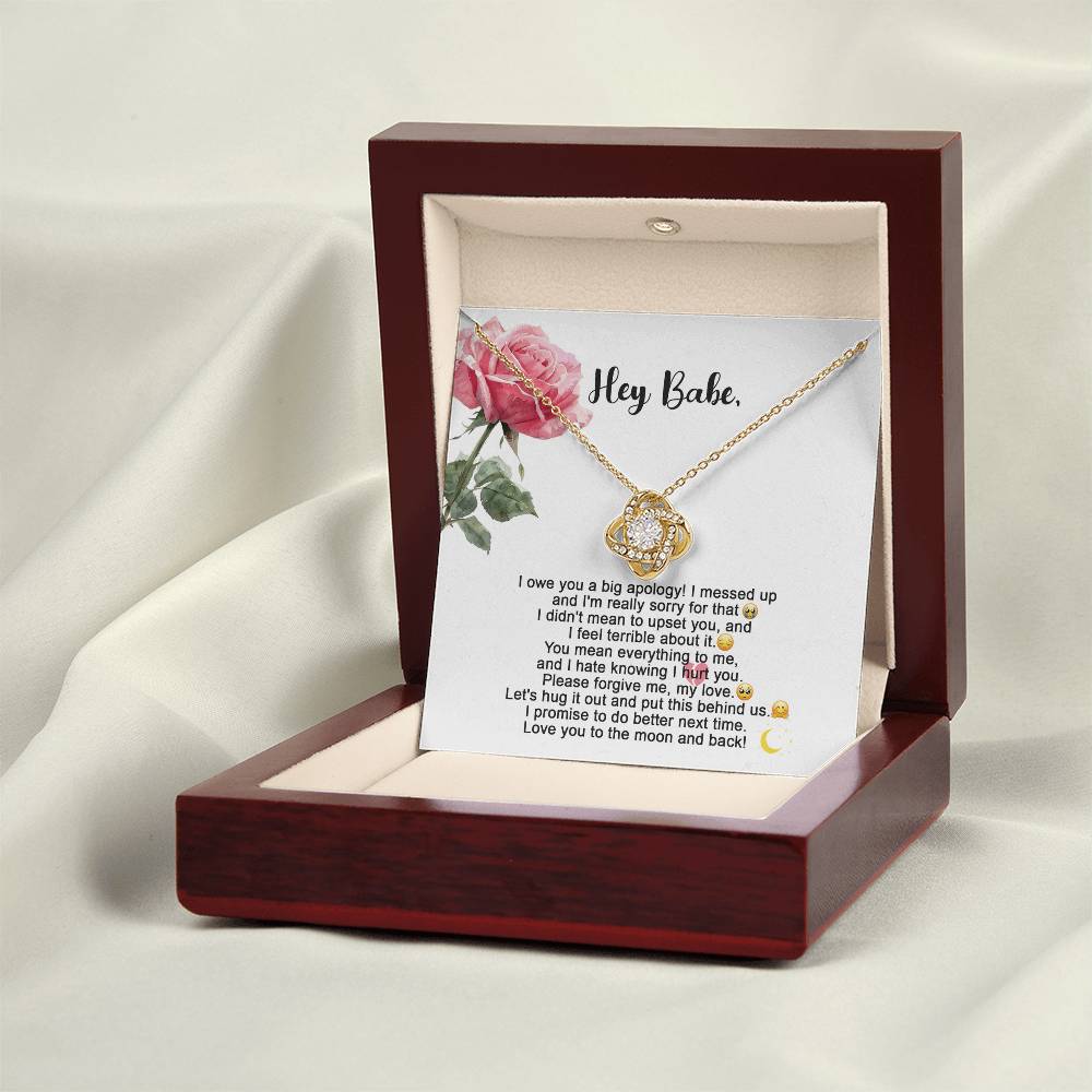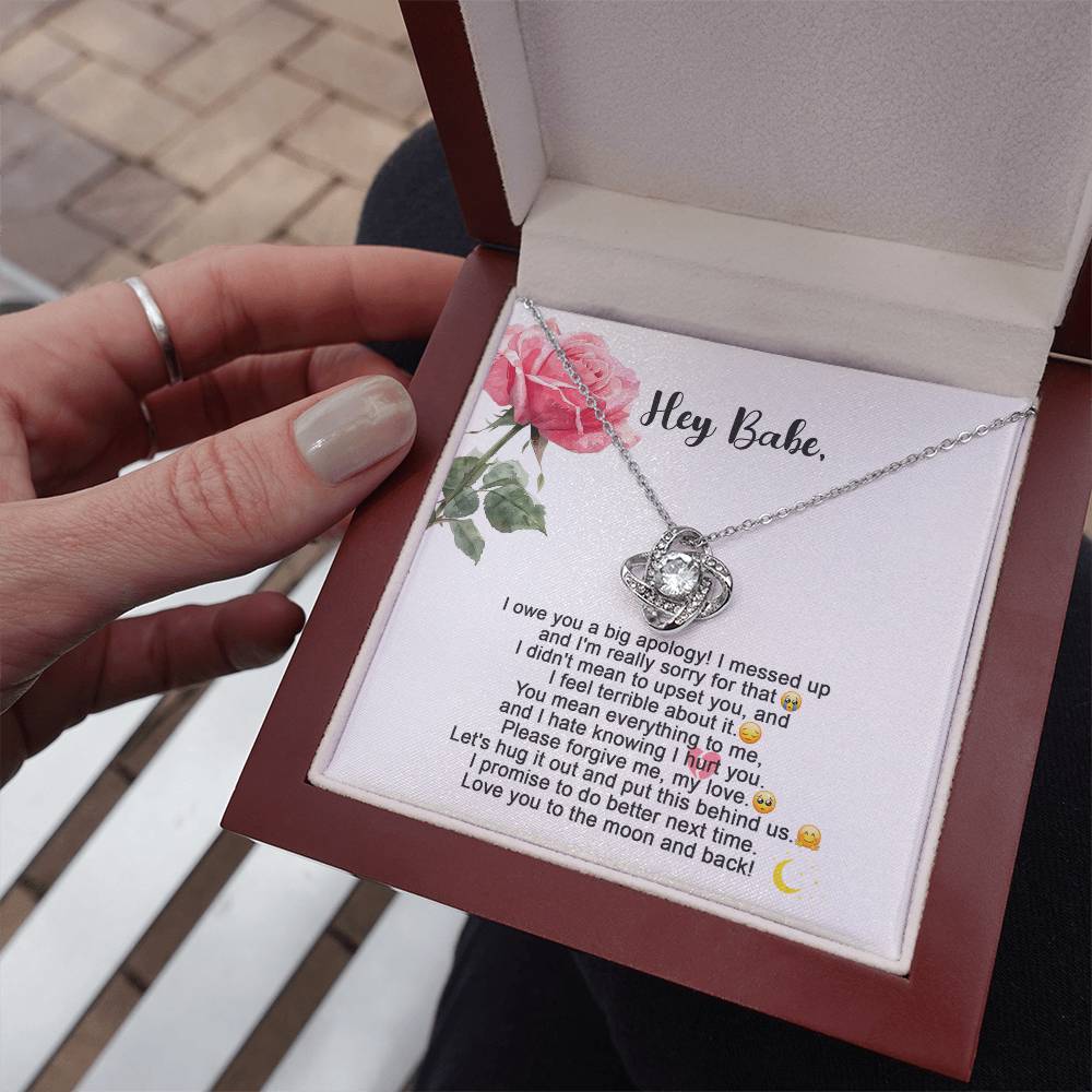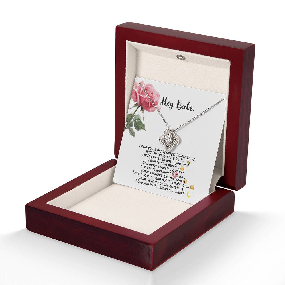 Imagine her reaction receiving this beautiful Love Knot Necklace. Representing an unbreakable bond between two souls, this piece features a beautiful pendant embellished with premium cubic zirconia crystals. Surprise your loved one with this gorgeous gift today!