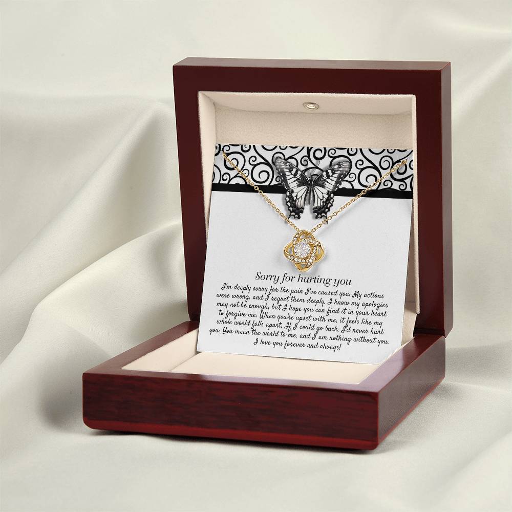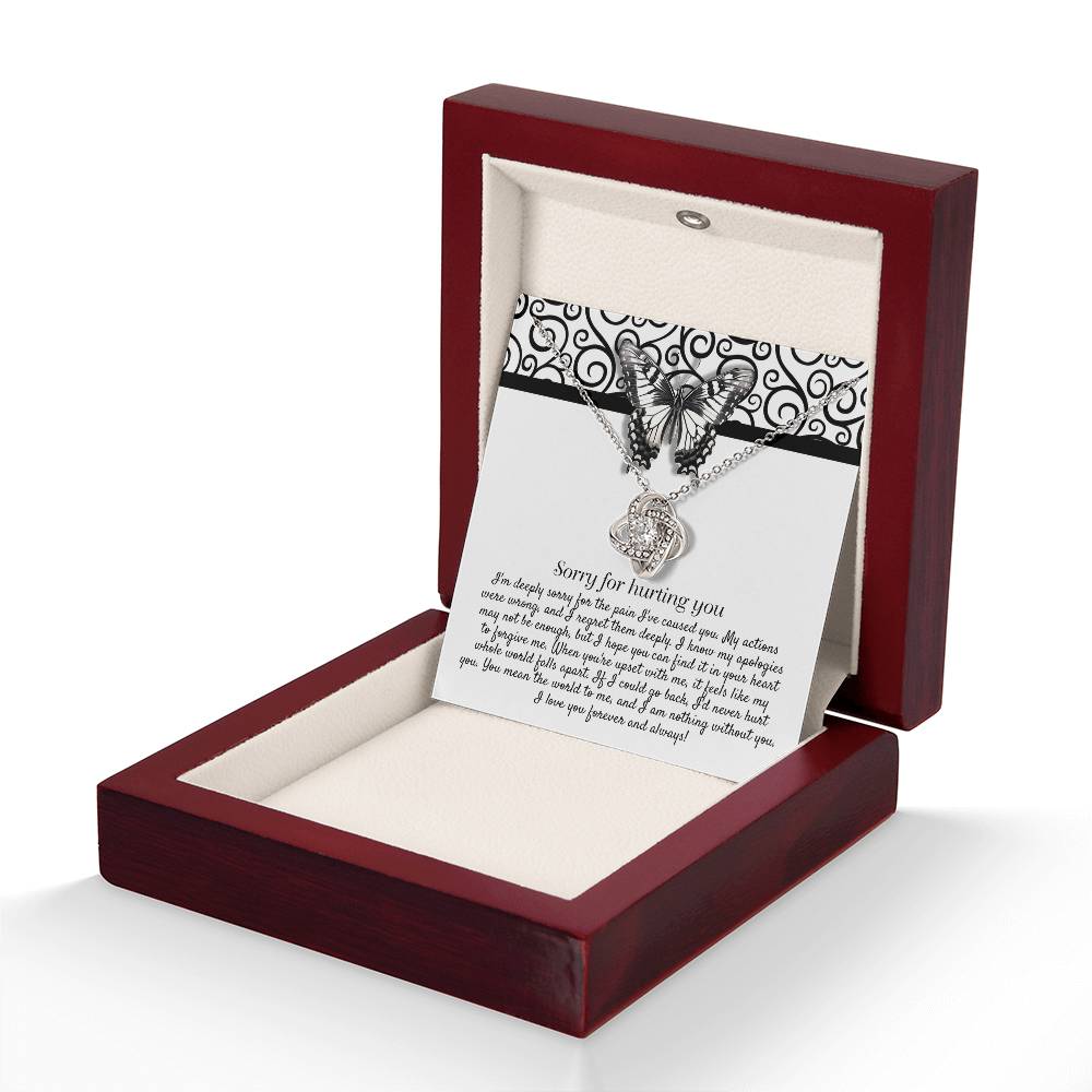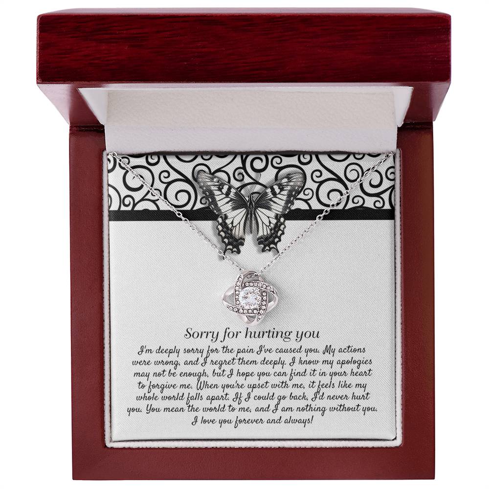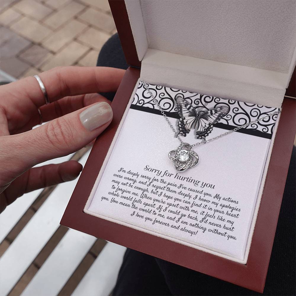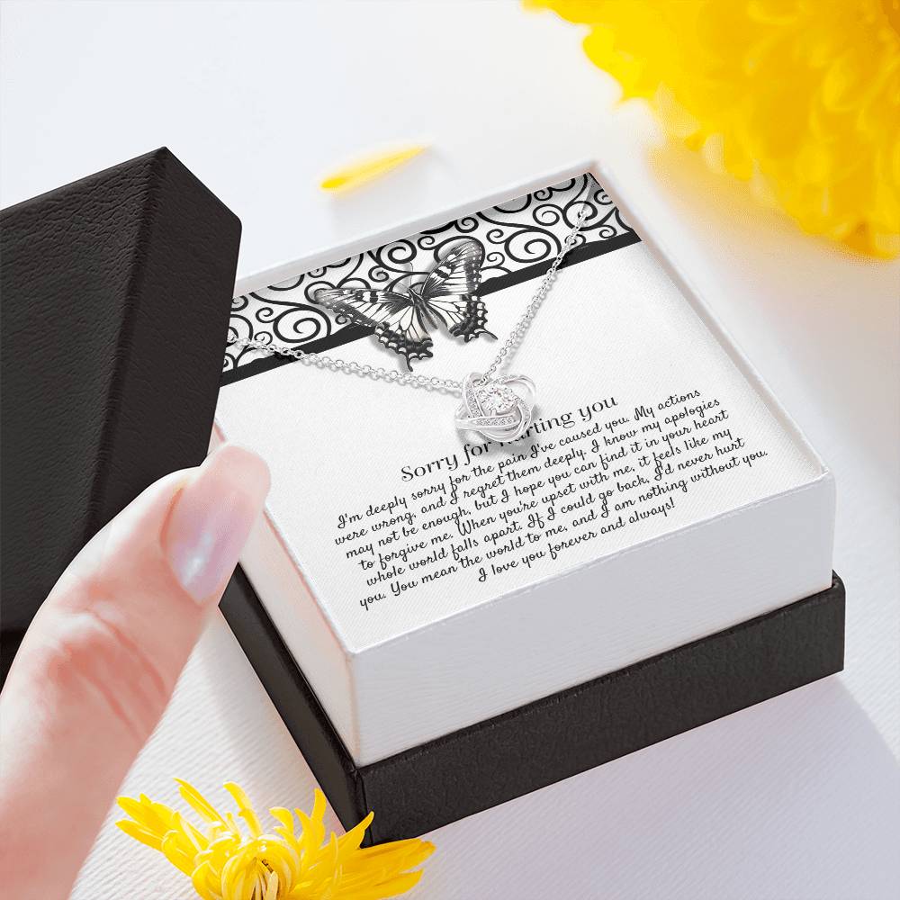 Imagine her reaction receiving this beautiful Love Knot Necklace. Representing an unbreakable bond between two souls, this piece features a beautiful pendant embellished with premium cubic zirconia crystals. Surprise your loved one with this gorgeous gift today!