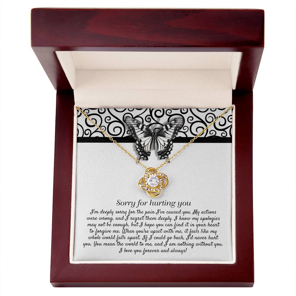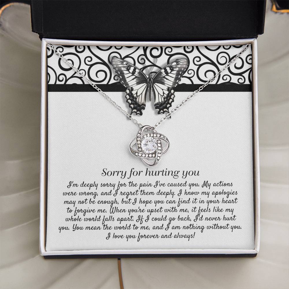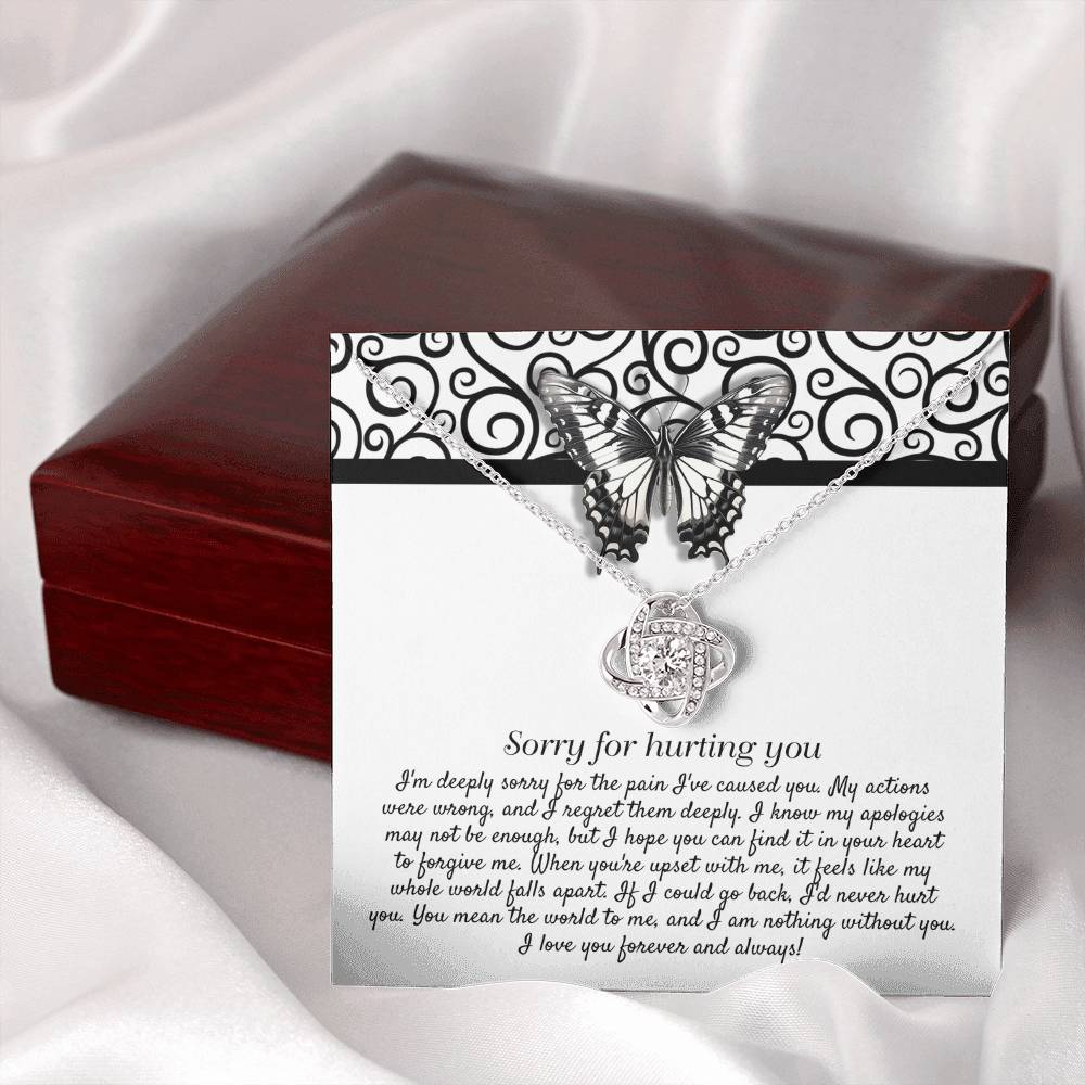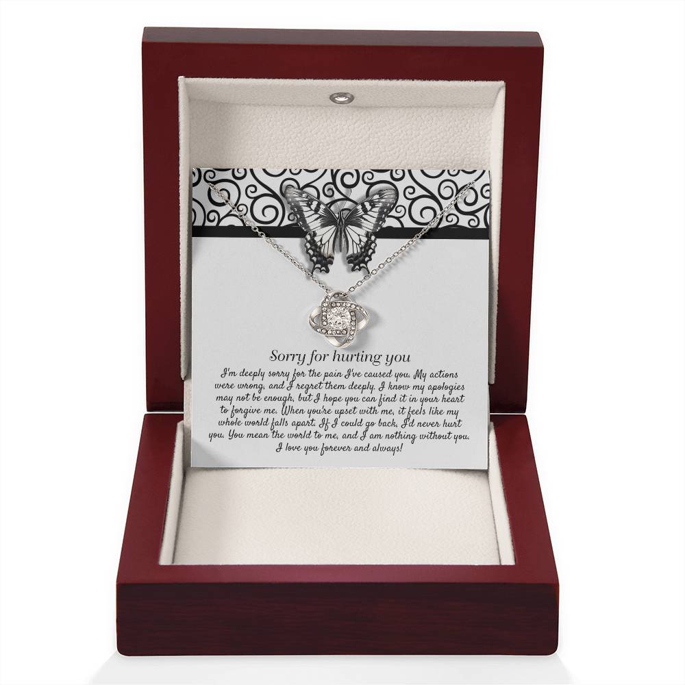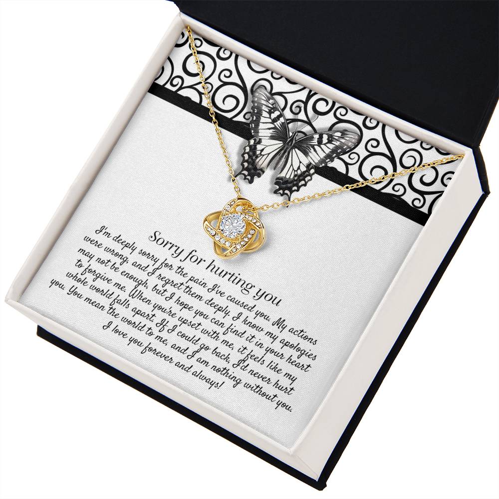 Imagine her reaction receiving this beautiful Love Knot Necklace. Representing an unbreakable bond between two souls, this piece features a beautiful pendant embellished with premium cubic zirconia crystals. Surprise your loved one with this gorgeous gift today!