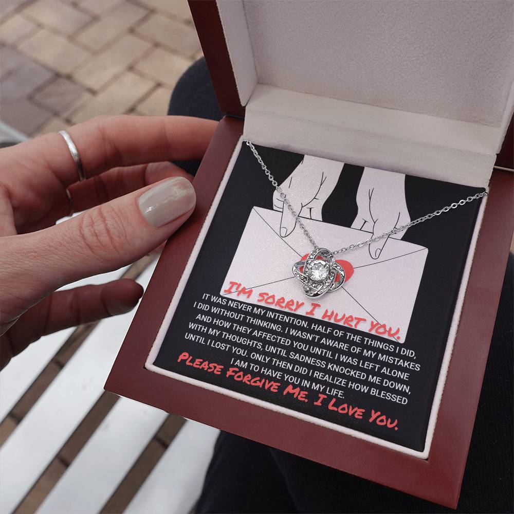 Imagine her reaction receiving this beautiful Love Knot Necklace. Representing an unbreakable bond between two souls, this piece features a beautiful pendant embellished with premium cubic zirconia crystals. Surprise your loved one with this gorgeous gift today!
