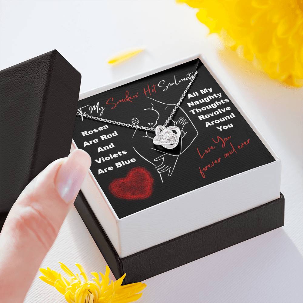 Imagine her reaction receiving this beautiful Love Knot Necklace. Representing an unbreakable bond between two souls, this piece features a beautiful pendant embellished with premium cubic zirconia crystals. Surprise your loved one with this gorgeous gift today!