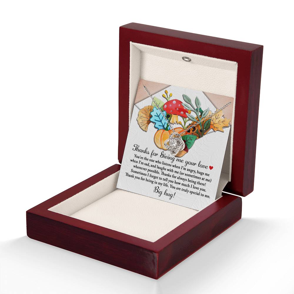 Imagine her reaction receiving this beautiful Love Knot Necklace. Representing an unbreakable bond between two souls, this piece features a beautiful pendant embellished with premium cubic zirconia crystals. Surprise your loved one with this gorgeous gift today!